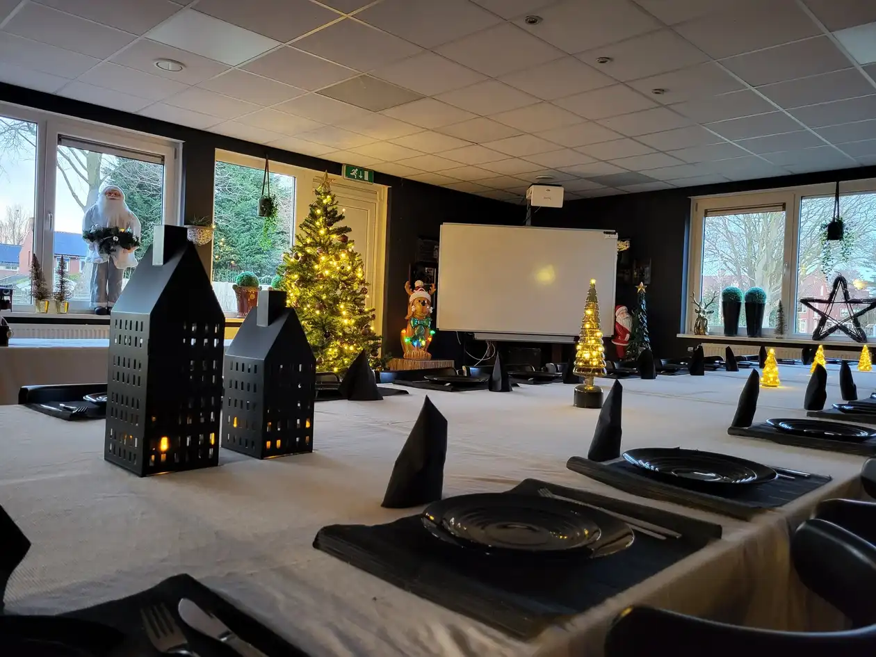 Er waren een 40 tal medewerkers aanwezig, na afloop kreeg een ieder een goed gevuld kerstpakket mee naar huis.