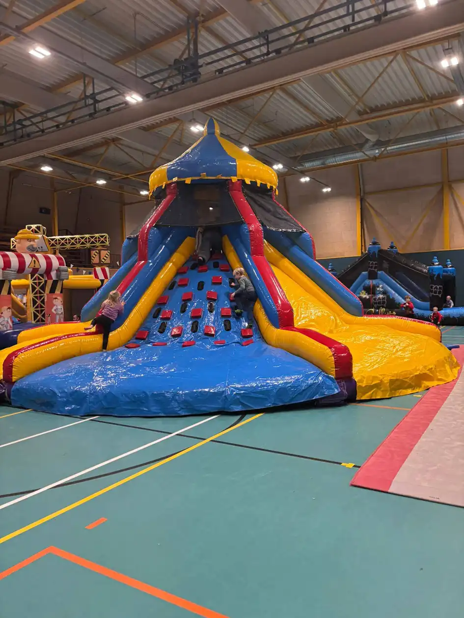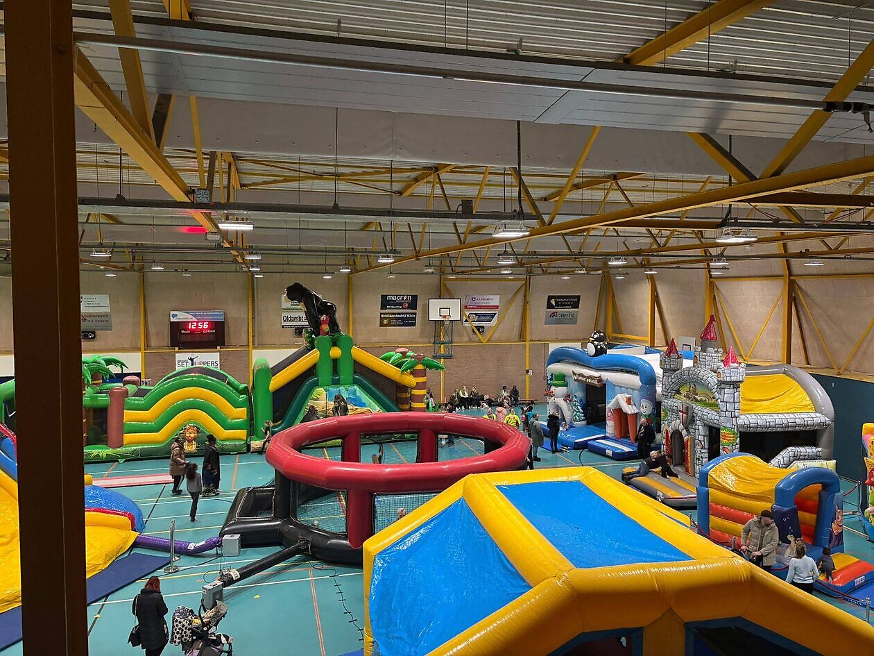 Op 1 en 2 januari werd de sporthal weer omgetoverd tot een waar springfestijn! Jong en oud konden weer heerlijke rennen, klimmen en klauren op alle springkussens.